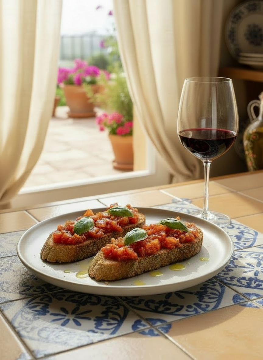 Traditional Organic Bruschetta from sun-ripened tomatoes