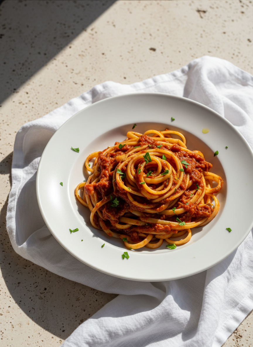 The recipe follows the traditional cuisine of Sicily: honest, clearly structured and without unnecessary ingredients. The result is a harmonious sauce with balanced acidity, a delicate herbal note and a subtle marine aroma – ideal for lovers of authentic Italian cuisine.